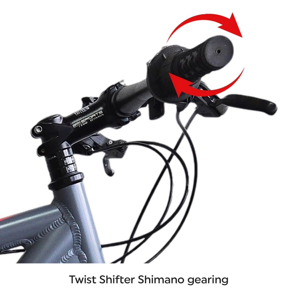It features reliable Shimano 18-speed gearing, effortlessly controlled by grip shifters, giving you the flexibility to tackle hills or pick up speed on flat ground. The front and rear disc brakes offer responsive, all-weather stopping power for added safety and confidence.