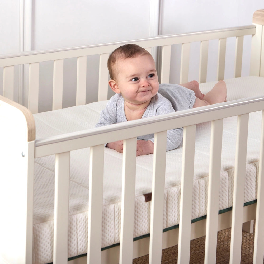 Design your nursery with lasting comfort and clean, contemporary style. The Haddington Cot Bed starts as a fixed side cot, and adapts with 3 adjustable mattress base height levels (30cm, 38cm and 58cm) to grow with your little one.
