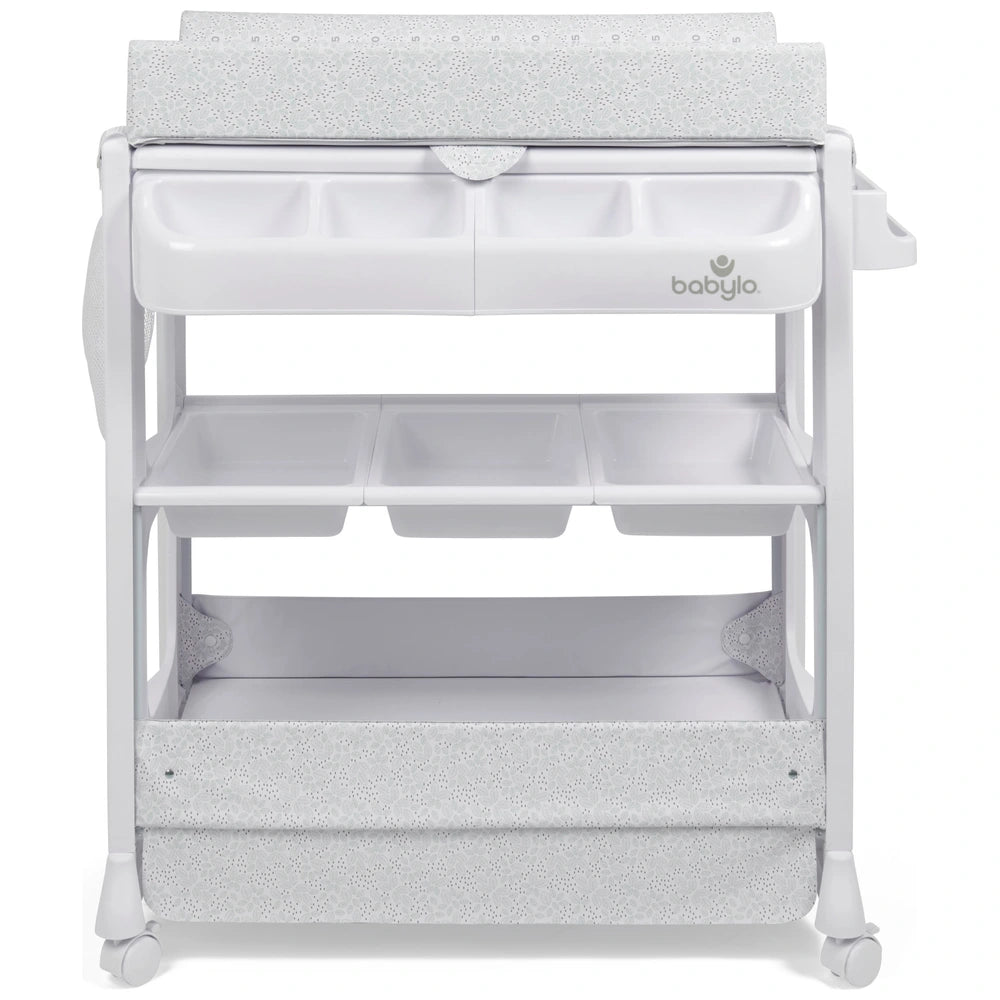 With built-in storage for baby essentials, the changing unit features organiser trays, spacious shelves and lockable castor wheels for manoeuvrability. A complete game-changing addition to your nursery routine, the Babylo Bath and Baby Changing Table makes bathtime and changing simple!