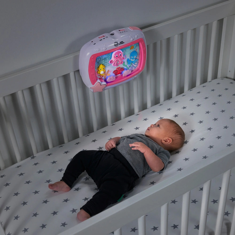 More than just a lullaby machine, the Sea Dreams Soother comforts your baby with classical melodies. It also features soothe and glow light effects – brought to life by an enchanting cast of Baby Einstein characters. Use it as a stand-alone toy to help with your baby's visual and auditory development and animal recognition.