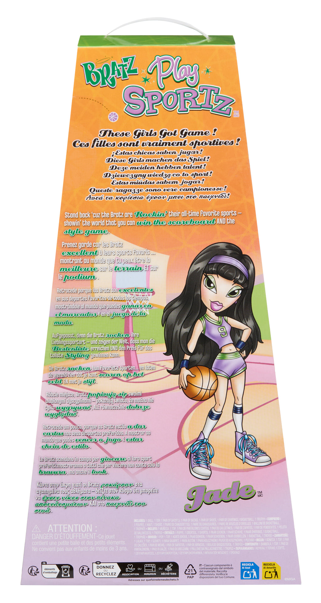 What'z Included: 1 Bratz Play Sportz Doll, 1 top, 1 short, 1 pair of shoes, 1 pair of socks, 1 basketball, 1 brush, 1 doll stand.