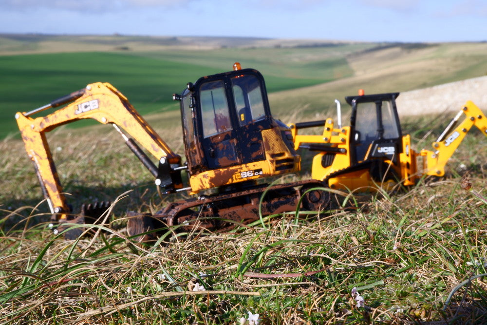 The JCB Muddy Midi Excavator 86C-2 is a new item in the “Britains At Work” collection. It features a unique lifelike muddy decoration finish on one of our best-selling models. This model has a rotating cab, functioning arm with bucket and rubber tracks. It’s one of a range of 1:32 scale models built of die cast metal and plastic. Suitable for indoor and outdoor play, for kids and collectors aged 3+.