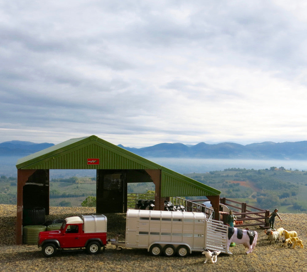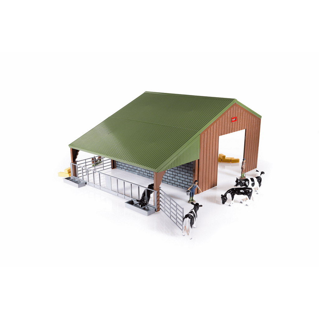 The Britains Farm Building Set is the perfect started kit for any young farmer - simply add your tractor of choice for an instant farm! Included is a farm building, 4 fresian cows, 2 pairs of chickens, a farming family and their trusty farm dog plus a big pile of bales. Compatible with all 1:32 scale authentic Britains replica tractors, vehicles, figures and accessories.