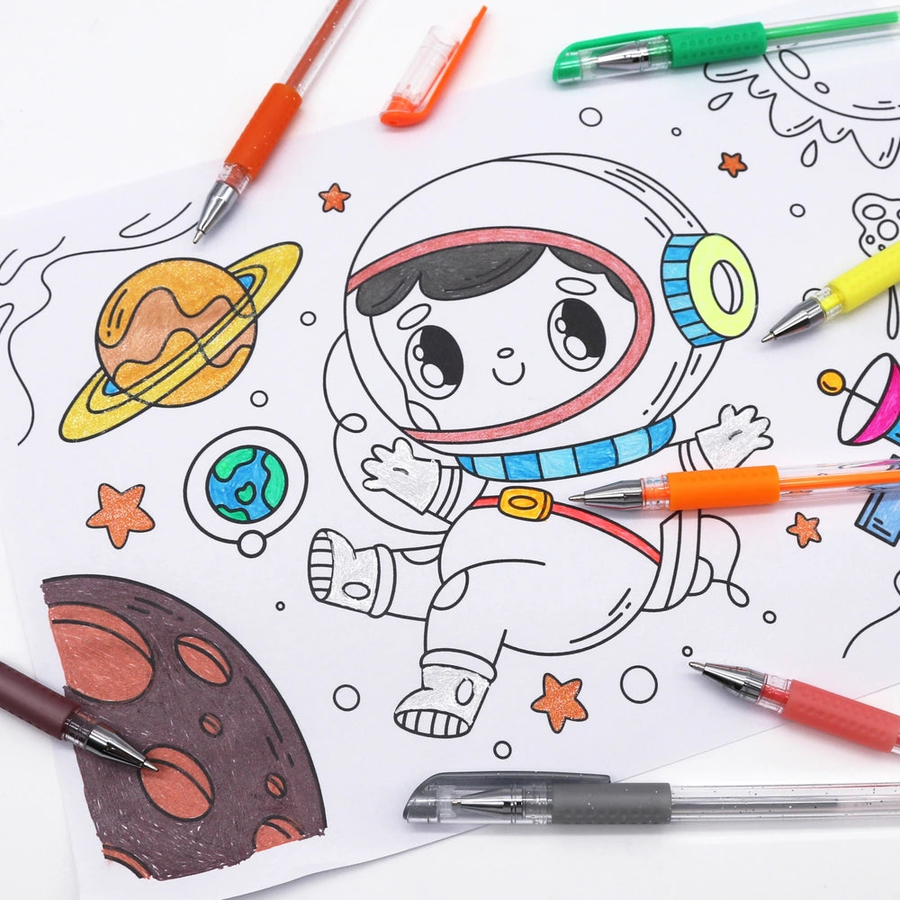 Unleash your creativity with the Crafty Co. Gel Pen Multi-Pack, featuring 100 vibrant gel pens in six exciting styles including glitter, neon, and metallic finishes. Perfect for scrapbooking, journaling, colouring, drawing, and more, these pens deliver smooth, precise writing with their durable hard tips ranging from 0.8 to 1.0mm.