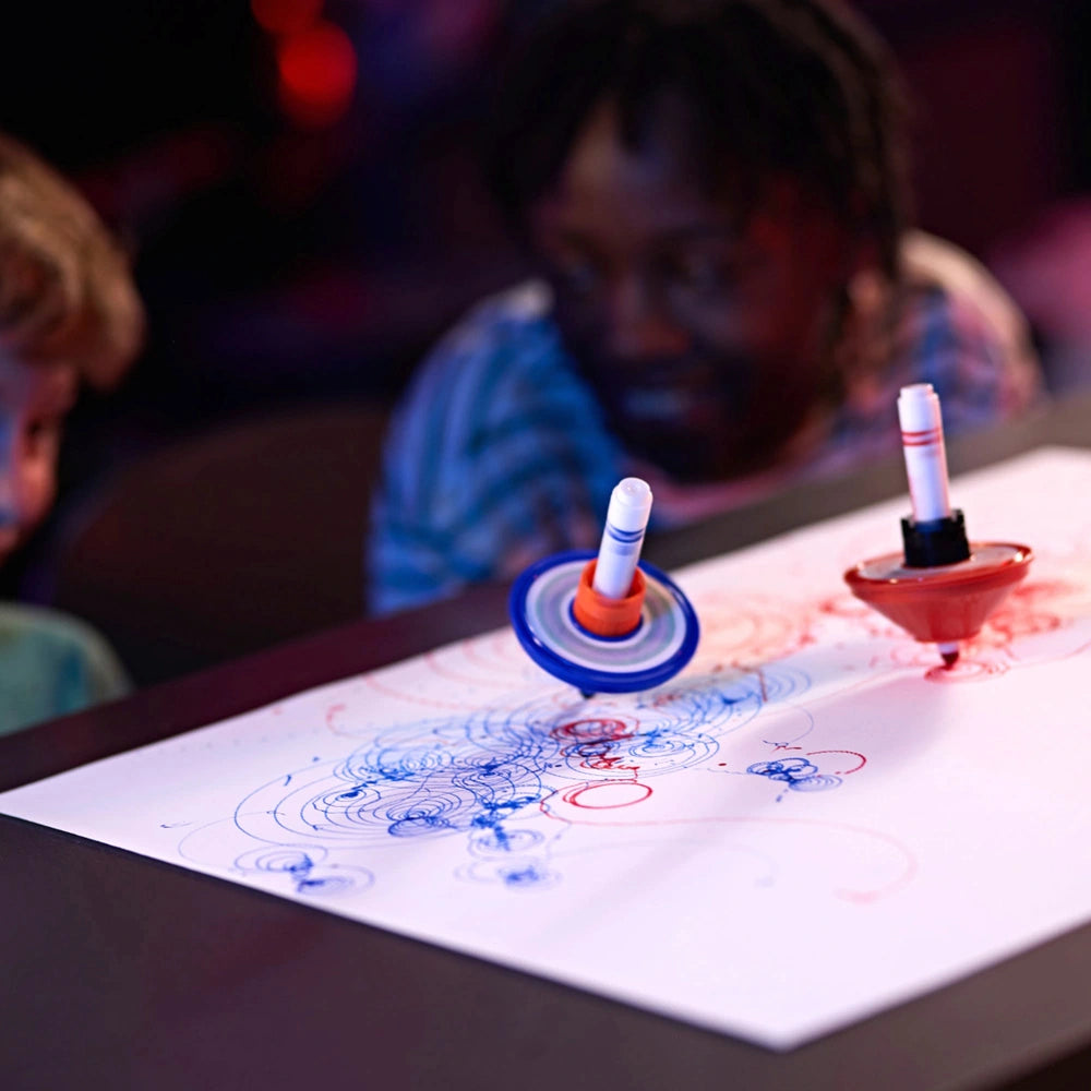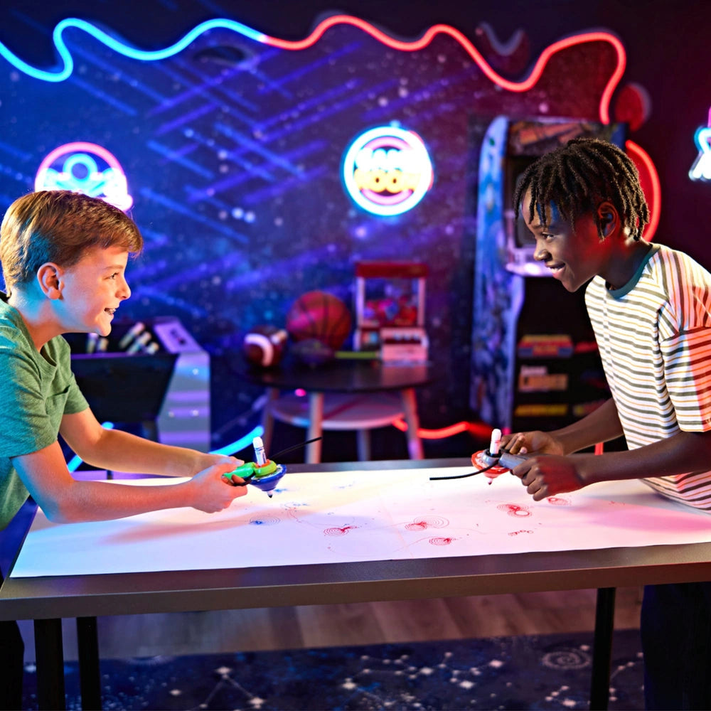 Explore endless play with the wipe-clean arena! Just load a marker in your Colourwhirl and let it spin