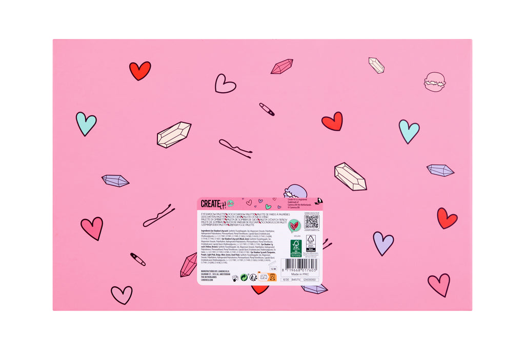 Unleash your inner artist with the Create it! Eyeshadow Palette XXL! This massive makeup palette features 75 stunning eyeshadow shades, with a focus on beautiful pastel colours. From soft pinks and purples to bold blues and greens, this palette has everything you need to create endless eye-catching looks. Perfect for young makeup enthusiasts, each shadow is highly pigmented and easy to blend, allowing you to experiment and play with different styles. Whether you're going for a subtle daytime look or a dramatic evening style, the Create it! Eyeshadow Palette XXL has you covered. The Create it! products are designed for children aged 6 and over.