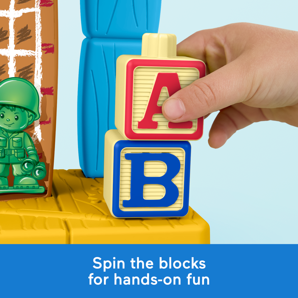 Kids can imagine exciting adventures inspired by Disney and Pixar’s Toy Story films with this Little People Andy’s Room playset from Fisher-Price! Styled like the iconic playroom from the films, this action-packed set features cool launching action and hands-on activities for toddlers to explore plus familiar characters and details young fans will remember, including Slinky Dog, the army soldier figures, and alphabet stacking blocks. Includes Woody figure and RC character vehicle. Look for additional Little People figures featuring Disney and Pixar Toy Story characters to bring to Andy’s Room! Little People playset styled like Andy’s iconic playroom from Disney and Pixar’s Toy Story films for toddler-friendly storytelling play. Launching action! Press or slide the Discovery Buttons to see RC zoom down the track and Slinky Dog stretch out. Hands-on activities to explore: Spin a figure on the archway peg, spin the stack of blocks, and roll RC through the doorway. Playset includes Woody figure and RC character vehicle, each sized just right for small hands to grasp and move. This toy helps foster fine motor skills, imaginative play, and cause and effect for toddlers and preschool kids ages 18 months and older Fisher-Price Little People Disney & Pixar Toy Story Andy’s Room Toddler Playset, Woody & RC Vehicle 1 playset, 1 figure, 1 vehicle.