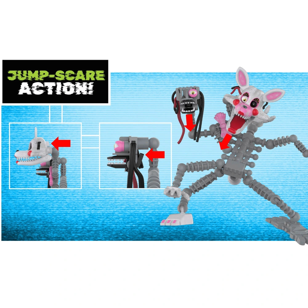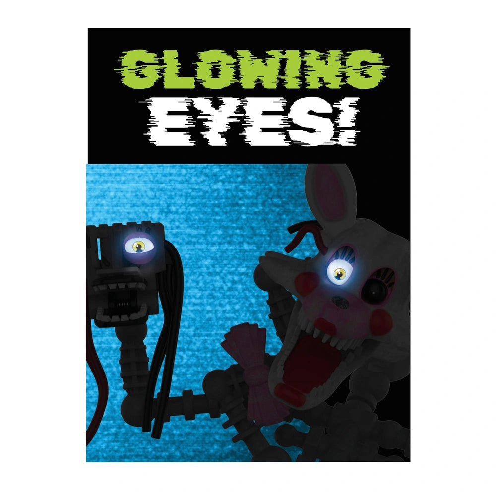 Pull apart the fun and fear with the Five Nights at Freddys Mangle action figure. Standing at 12.5cm tall, this articulated figure captures Mangles twisted look from FNAF 2, complete with over 10 points of articulation, eerie glow-in-the-dark eyes, and a chilling jumpscare feature! Just like in the game, you can take Mangle apart and reassemble for endless creepy play. A must-have for Five Nights at Freddys fans and collectors aged 8 years and up. Contents: x1 FNAF Mangle action figure.