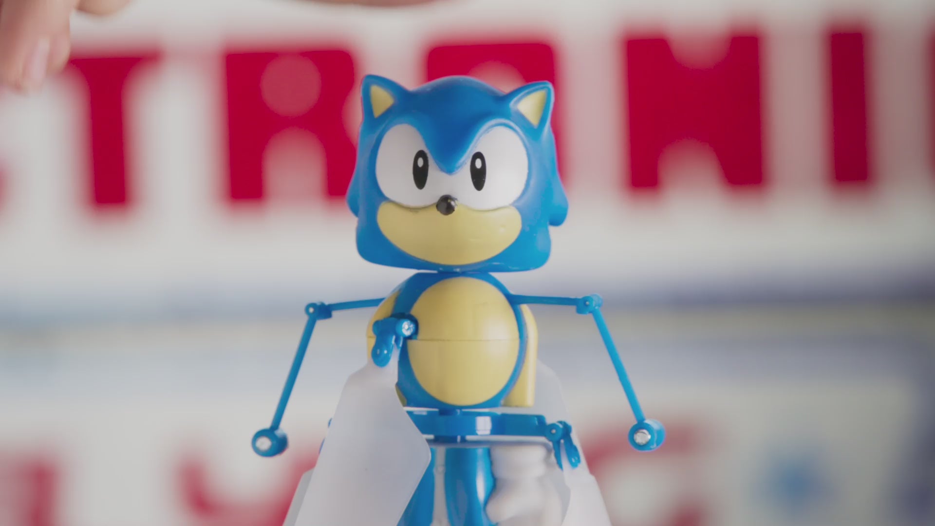 Take flying action to the next level with Flying Heroes Hover n' Spin Sonic! With 4 high-speed motorised propellers, Sonic takes flight! Tap his head to launch, and use your hand to keep him in the air! Once hes flying, put your hand below Hover n' Spin Sonic to control his direction, and guide him as he hovers in the air! How long can you keep him flying? Rechargeable Flying Heroes Sonic comes with a USB cable, and a standing base to display Sonic until hes ready for take-off!