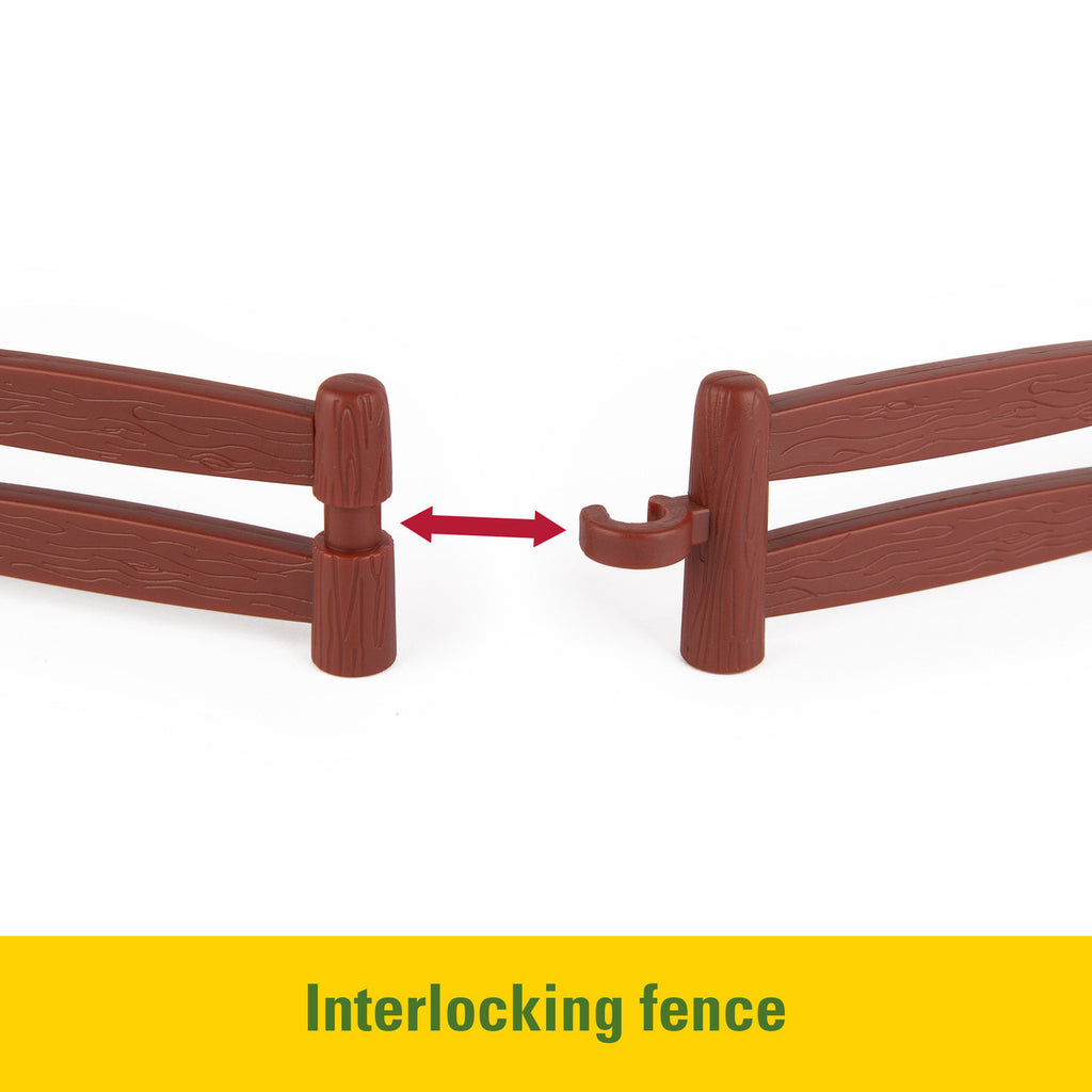 Introducing 1st Farming Fun from TOMY, a perfect way to grow your little one’s first farm toy collection! The set features vehicles, figures, animals, and accessories that are all the perfect size for little hands to easily grasp and play with, making it the ideal first toy farming set. The Fun on the Farm Playset includes 20-pieces which include 4 vehicles: a John Deere combine, gator, and two tractors. Create real harvesting action with the combine by pushing it along to make the head rotate and the grain pivot back and forth in the hopper. The toy tractors feature functioning hood and loader for hands on play and hours of farming fun. Set also includes 2 farmers, 4 farm animals, 3 wagons and accessories along with 4 pieces of easy-to-assemble fence.