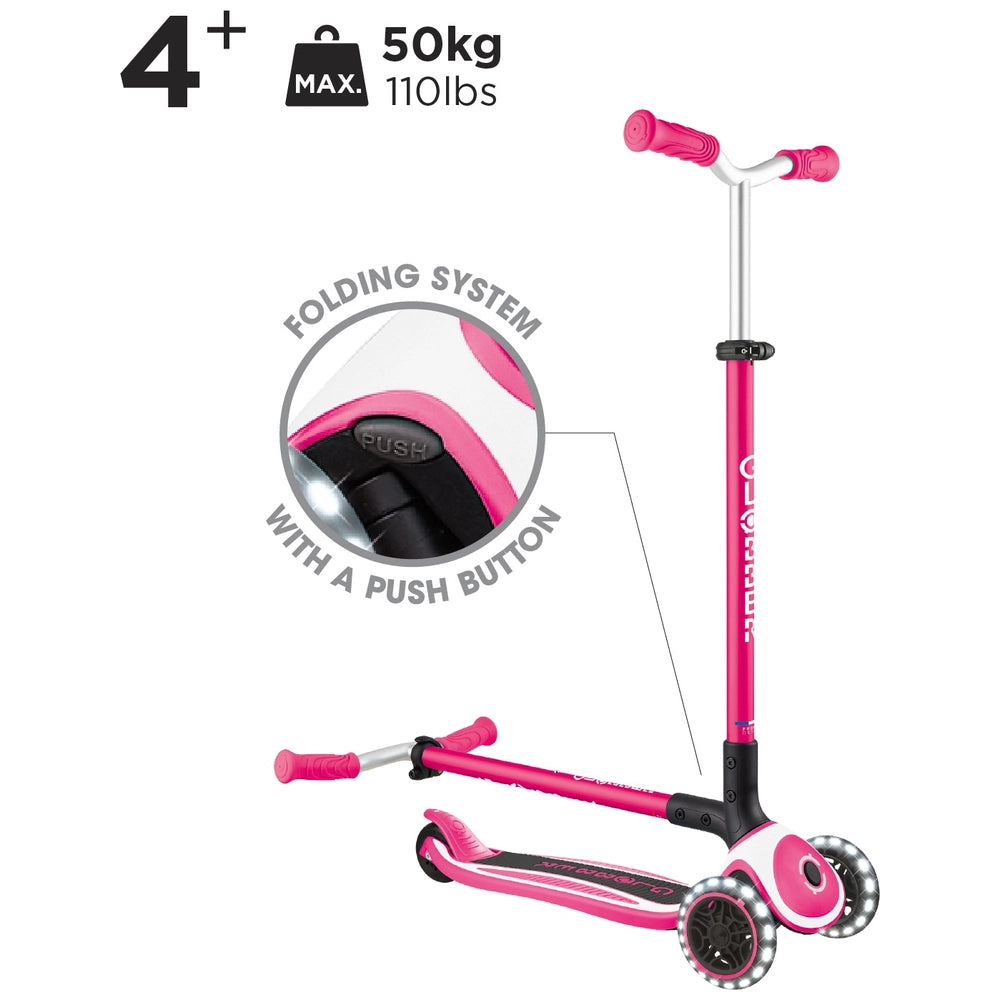 Contents: 1x Globber Pro Lights Scooter Folding Pink.