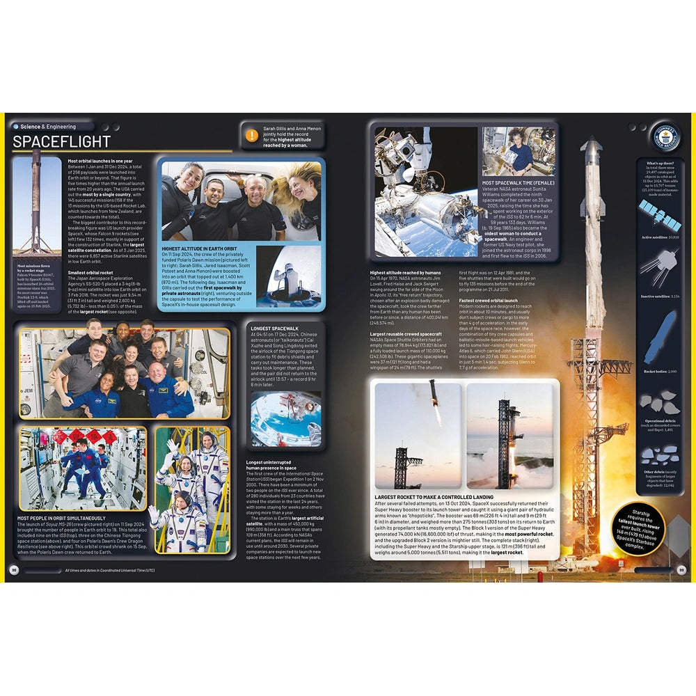 Marvel at the possibilities of the cutting-edge tech behind modern cities, robots and space exploration in a dedicated Science & Engineering chapter. Find a hidden talent within the Fantastic Feats chapter, including crazy collections, super strength and even pickleball! Celebrate the differences of the most incredible Human Beings from height extremes to superlative seniors and awesome anatomy. Take on the grown-ups with records just for under 16s and the Young Achievers proving age is no barrier in the Kids Zone.