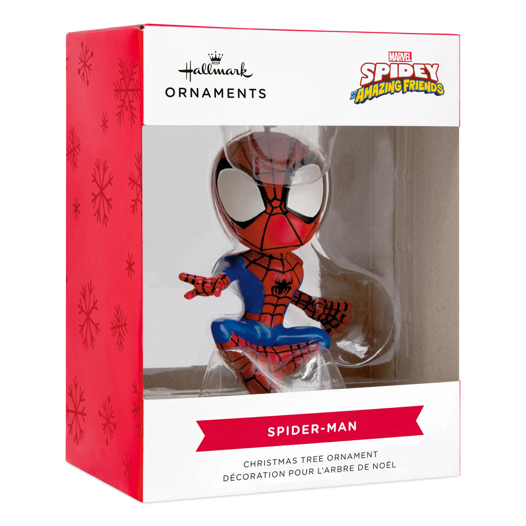 This ornament features Spider-Man from MARVEL, the Avengers, and is made of hard-wearing resin with a hanging attachment for easy display.