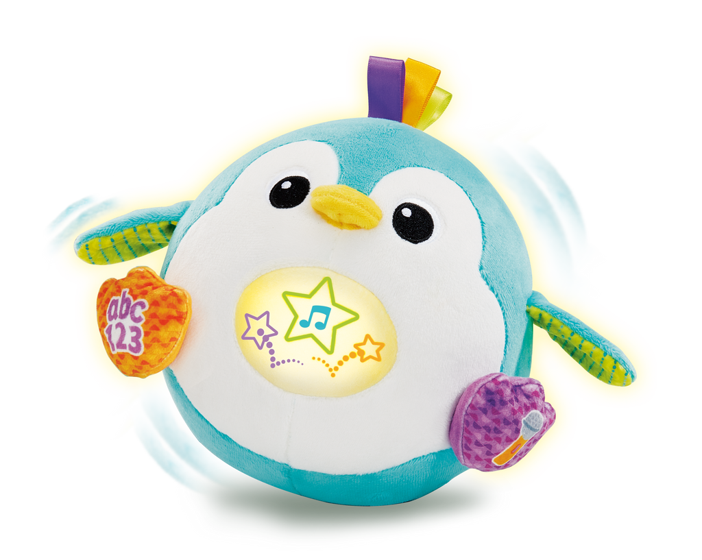 Meet the 123 Bounce with Me Penguin—a playful friend that brings learning and laughter to life! This cheerful penguin bounces with joy whenever your child talks, claps, or makes a sound, encouraging active play and movement. As little ones crawl or reach to catch it, they build gross motor skills while staying engaged. With fun songs and phrases, Penguin introduces letter sounds and counting, turning playtime into a learning adventure. Kids can even record a message and hear it back in a funny voice, adding extra giggles. Interactive, educational, and full of energy, this penguin makes every playtime exciting and joyful! Bounces with joy when children talk, clap, or make a sound, encouraging active play