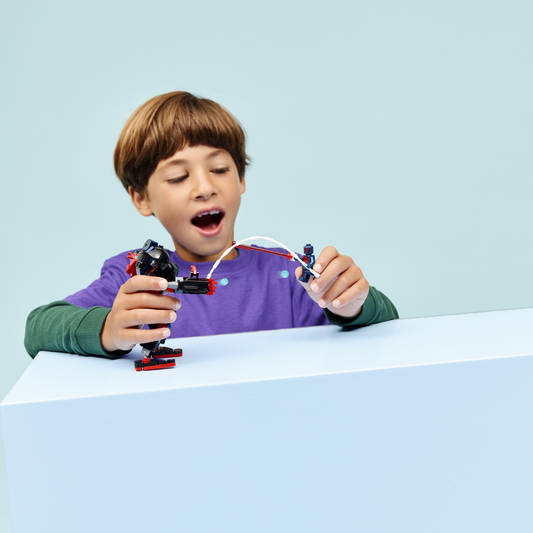 Bring supersized battle action from the Marvel movies to life with Miles Morales Mech vs. Spider-Man 2099 (76337), a Super Hero building toy gift for boys and girls aged 6 years old and over. This build-and-play kids’ toy will spark endless role play with a large, fully jointed mech, plus Spider-Man and Miles Morales minifigures.