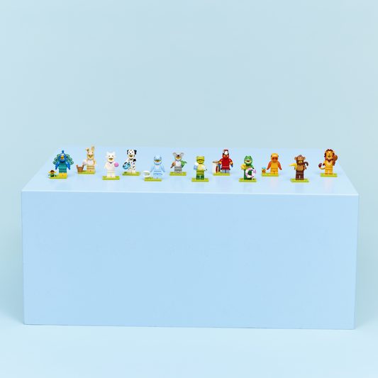 There is 1 surprise LEGO minifigure in each box and a total of 12 characters to collect, including toy figures wearing parrot, lion, frog, crocodile, Dalmatian, goldfish, cute bunny, peacock, fluffy cat, koala, dolphin and monkey costumes. Each of the 12 minifigures comes in a sealed mystery box, and all are accompanied by at least 1 accessory.