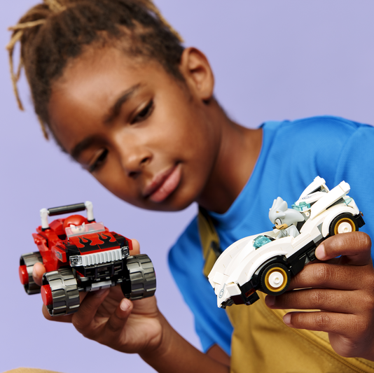 Racing adventures await kids aged 8 and over in this LEGO® Sonic the Hedgehog™ Silver’s Car vs. Knuckles’ Monster Truck (77118) video game building toy. Based on the Sonic Racing: CrossWorlds console game, race car and gaming fans can imagine racing around with Knuckles and the first-ever Silver the Hedgehog minifigures to see who will win. This collectable LEGO gaming merch playset includes 2 Chaos Emeralds in red and white on top of the rolling toolbox, a starting light and tools for imaginative role-play possibilities.