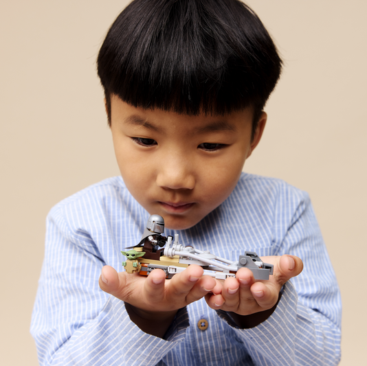 Kids can build with confidence using the LEGO Builder app – zoom, rotate in 3D and track progress with easy-to-follow digital instructions. Set contains 58 pieces. LEGO® Star Wars™ vehicle toy building set to spark kids’ imaginations. Role-play with The Mandalorian LEGO® minifigure and a Grogu LEGO figure. Quick-build Star Wars: The Mandalorian™ building toy for hours of play. Place The Mandalorian in the driver’s seat and Grogu in the attached satchel. LEGO® Star Wars: The Mandalorian™ gift for kids, boys and girls aged 6 and over. Find LEGO® Star Wars™ collectible sets (sold separately) for fans of all ages. Discover enhanced 3D building instructions in the LEGO® Builder app. The LEGO® Star Wars™ speeder measures over 11 cm (4.5 in.) long.