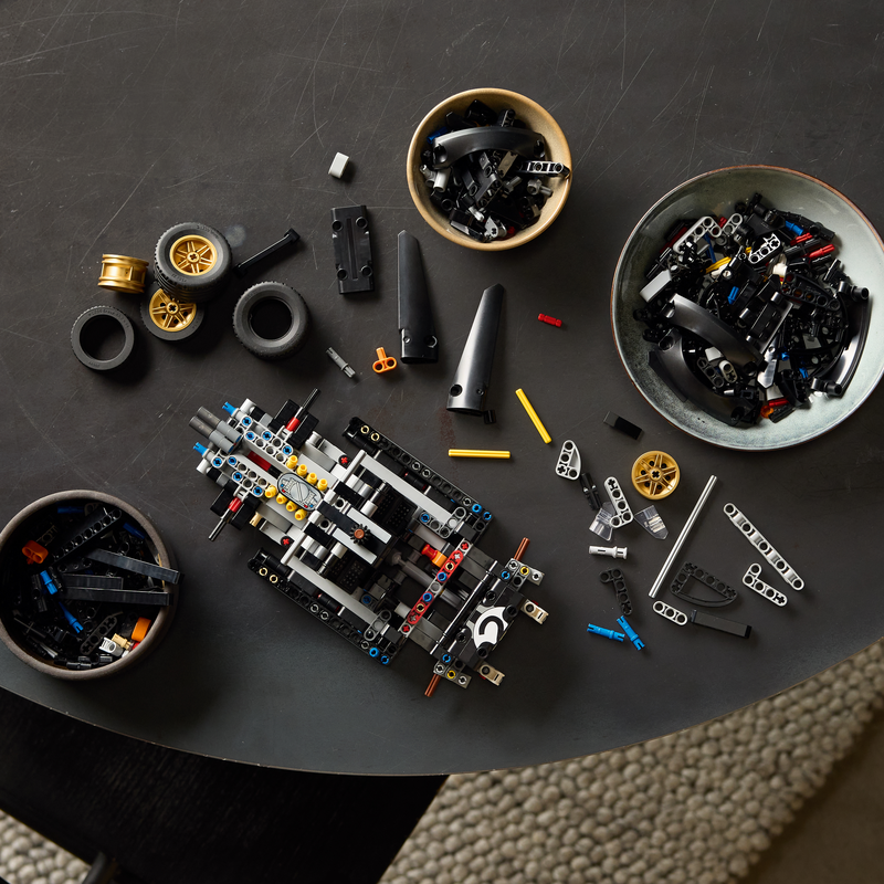 Have fun exploring the detailed features of the set. Use the knob on top of the car to steer. Check out the opening doors and admire the black-and-silver livery that’s inspired by the real-life champion car. Open the engine cover to reveal the V8 engine, then use the lever inside to open the bonnet. After you’ve built it, you can proudly display your race car in any room or office.