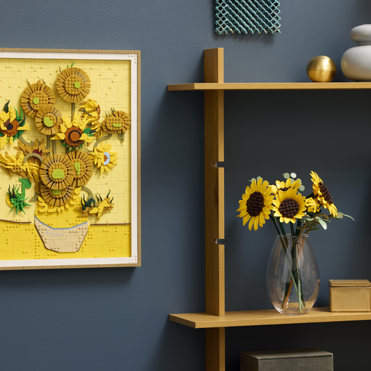 Sunflowers are thought to represent positivity, love and luck, so this LEGO building kit makes a thoughtful birthday, Valentine’s Day, Mother’s Day or housewarming gift for women, men and nature lovers. It’s also available in the LEGO Builder app, where builders can rotate their builds and track their progress. Set contains 686 pieces. Create decorative sunflowers with this flower building set. The bouquet includes 6 LEGO® sunflowers in various stages of bloom. Features 4 eucalyptus stems, plus adjustable petals and stems. Display the sunflowers as colourful flower decor in any room or office. A birthday, Valentine’s Day, Mother’s Day or housewarming gift for nature lovers. Available in the LEGO® Builder app, where builders can track their progress. Design a unique floral display with more LEGO® Botanicals sets, sold separately. Contains 686 pieces and the largest sunflowers measure over 36 cm (14 in.) high.