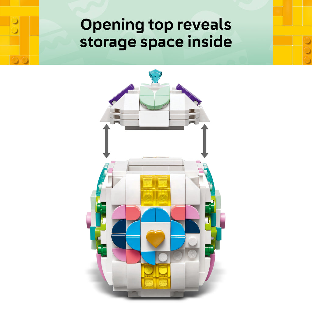 With this kids' crafts kit, you can make your own Easter egg and decorate it with colourful LEGO elements, including a golden heart and a small gemstone element. The toy egg has a flat base for ease of display and an opening top that can be removed so the extra pieces can be stored inside. Or maybe another Easter surprise.