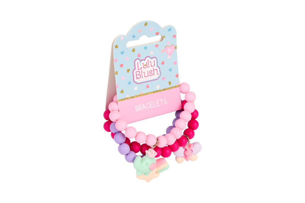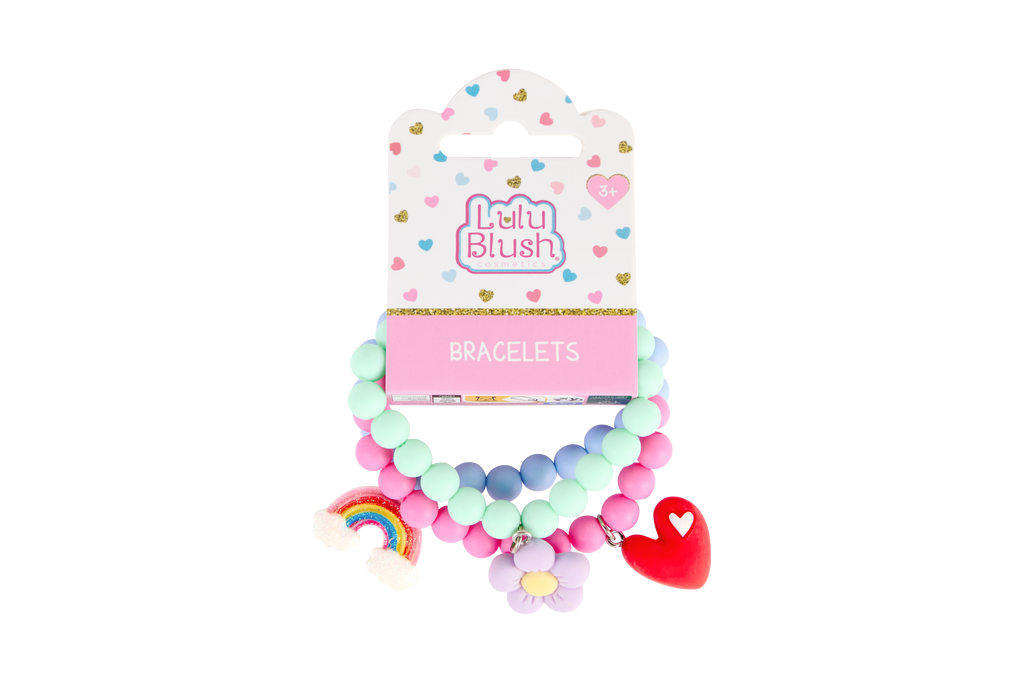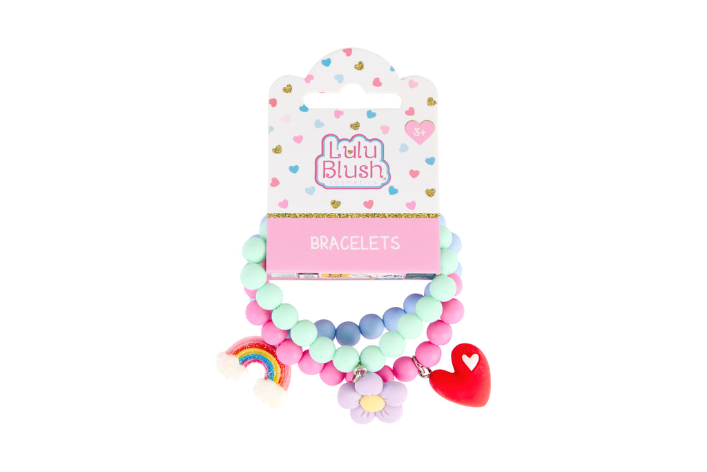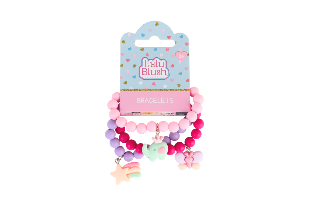 The cutest bracelets with fun colours and beads for the youngest fashionistas! The Lulu Blush Bracelets are s sweet addition to your little one's outfit. Each package contains three different bead bracelets with each one a cute charm; a fun little elephant, a colourful rainbow, or a sweet heart for your sweetheart.