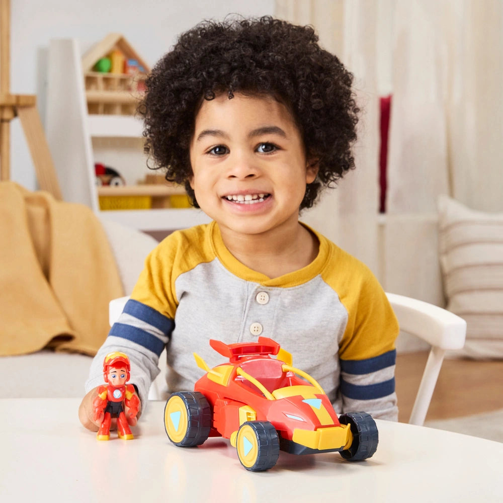 Join Team Iron Man on the latest adventures with the Marvel Iron Man and his Awesome Friends Figure & Vehicle 2-In-1 Mech Suit Iron Man Pack! This vehicle toy comes with an included 7.6cm tall Iron Man action figure, featuring hero reveal action. Just flip up the mask to reveal the face of Tony Stark, then flip it down to armour up as Iron Man! Toy vehicle converts from mech to vehicle or vehicle to mech in 3 easy steps. The figure can even stay inside during conversion!