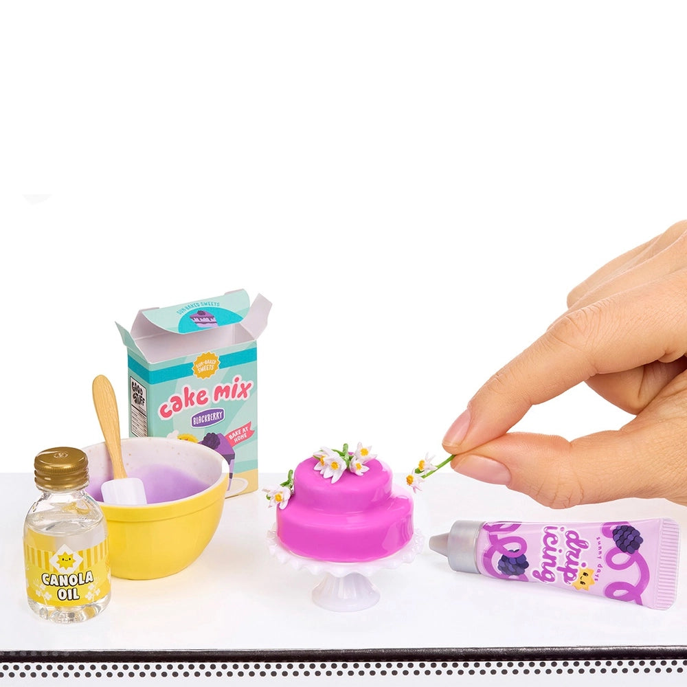 With the 'ingredients' inside, you can mix, layer, and build your mini dessert, guided by the included recipe card. After crafting, let your creation air dry, and once set, you'll have a collectible ready to display. The collection doesn't just stop at mini treats it includes cute accessories like mini mixing bowls, rolling pins, and boxes of cake mix!