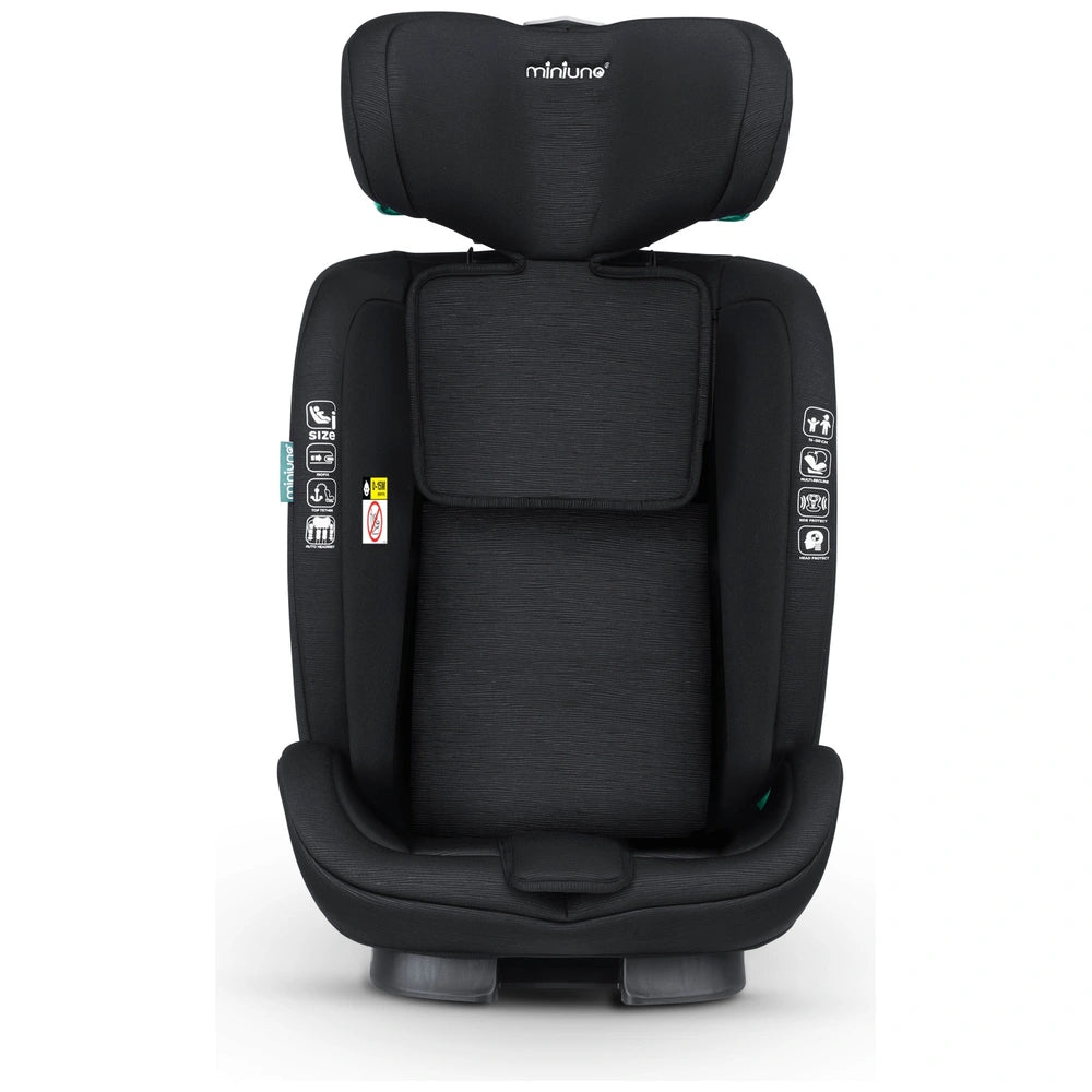 Contents: 1x miniuno Liviie i-Size R129 Isofix Car Seat, 1x Padded Body Support and Harness Pads, 1x Isofix Connector Guides, 1x Top Tether Anchor, 1x Instructions Manual.