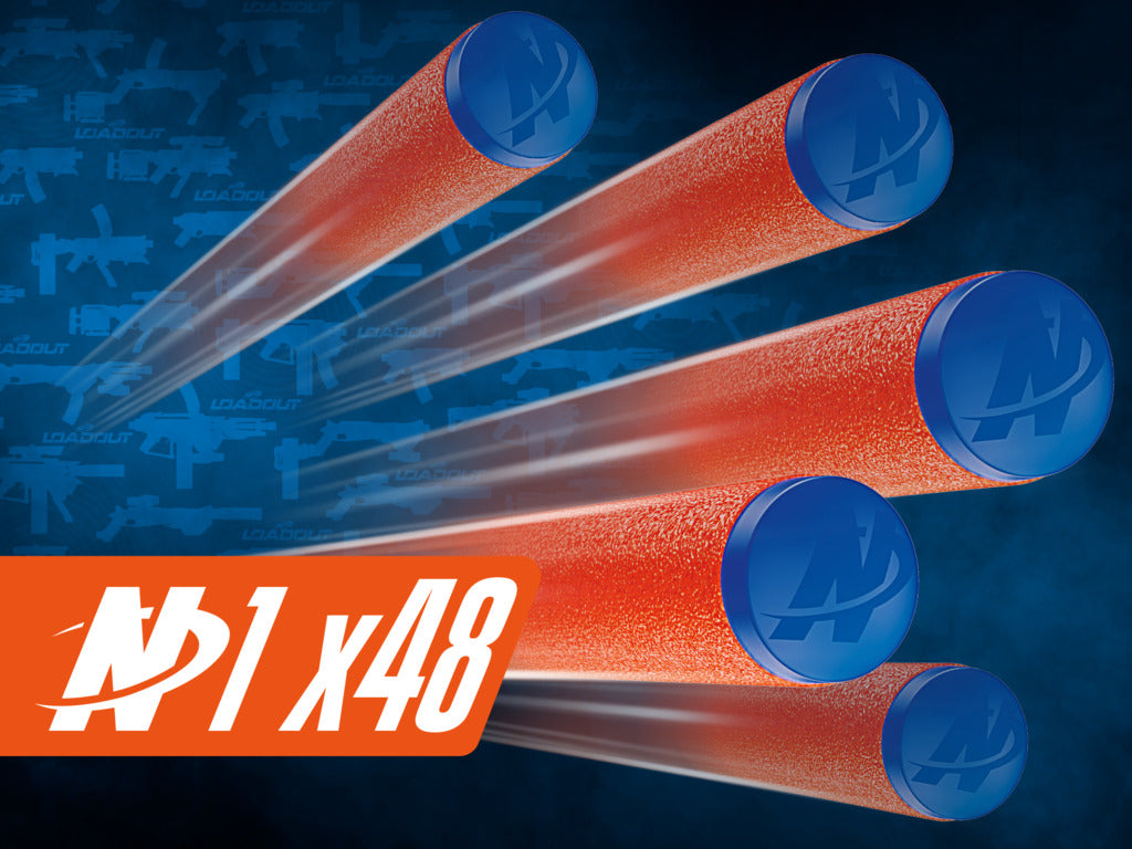 INCLUDES 48 NERF N1 DARTS & 2X 18-DART CLIPS: