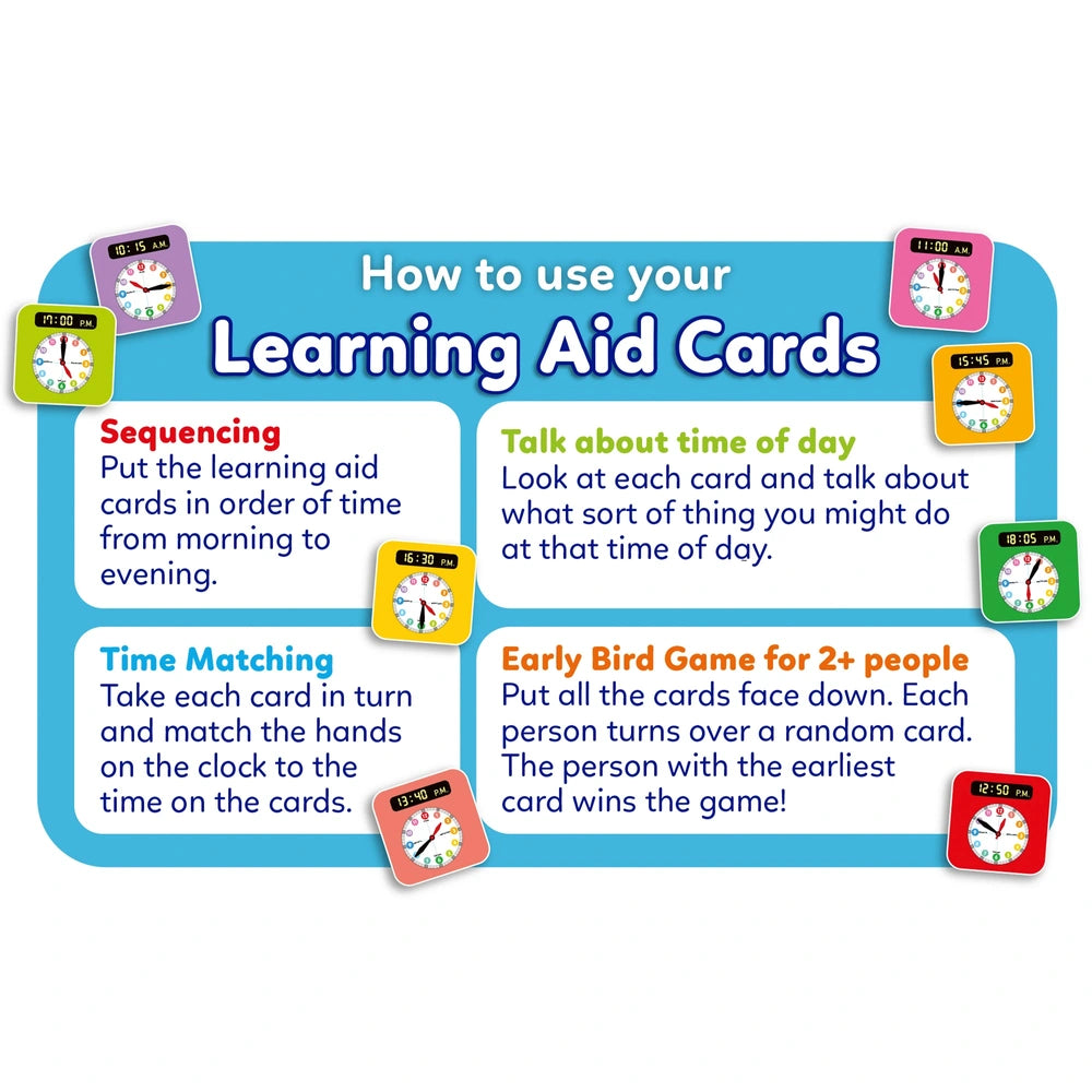 Children will enjoy piecing together this vibrant puzzle before using the clock to match times on the included learning aid cards. From getting up at 7am to lunchtime at 12, kids can explore daily routines while developing key time-telling skills. The included poster adds a fun visual reference, helping reinforce learning through play and discussion.