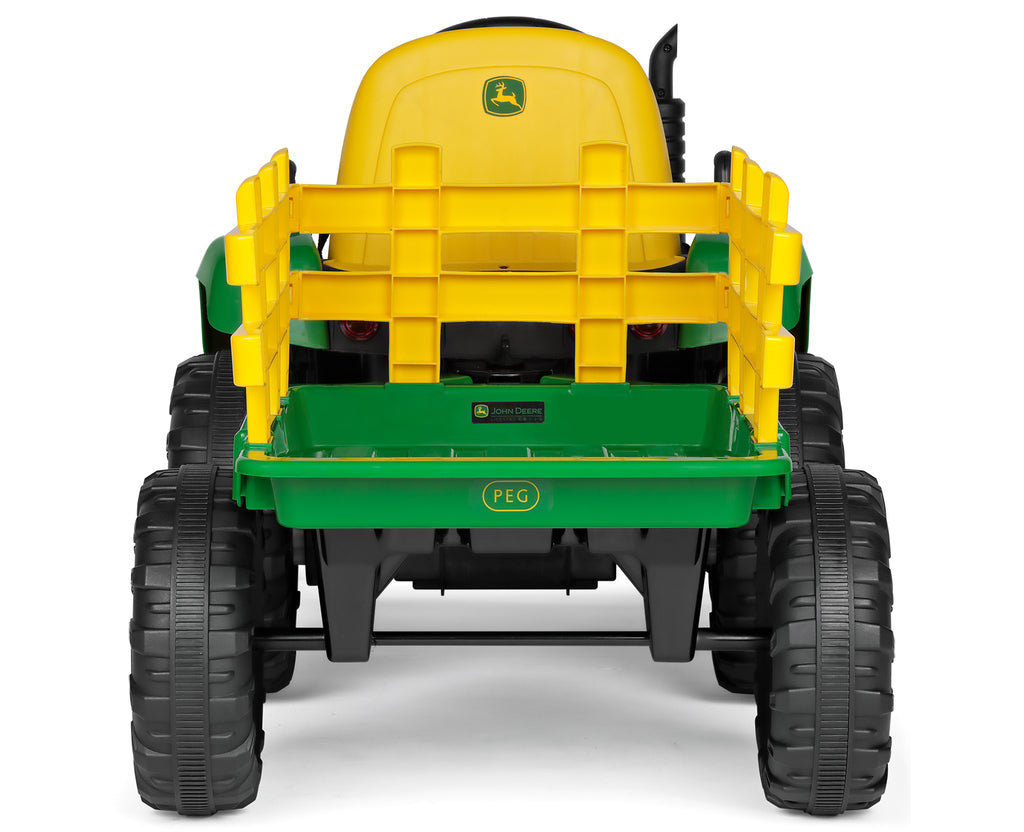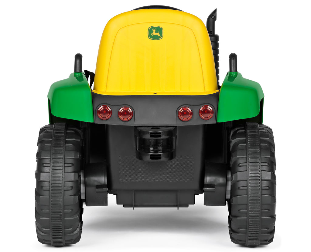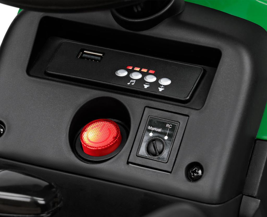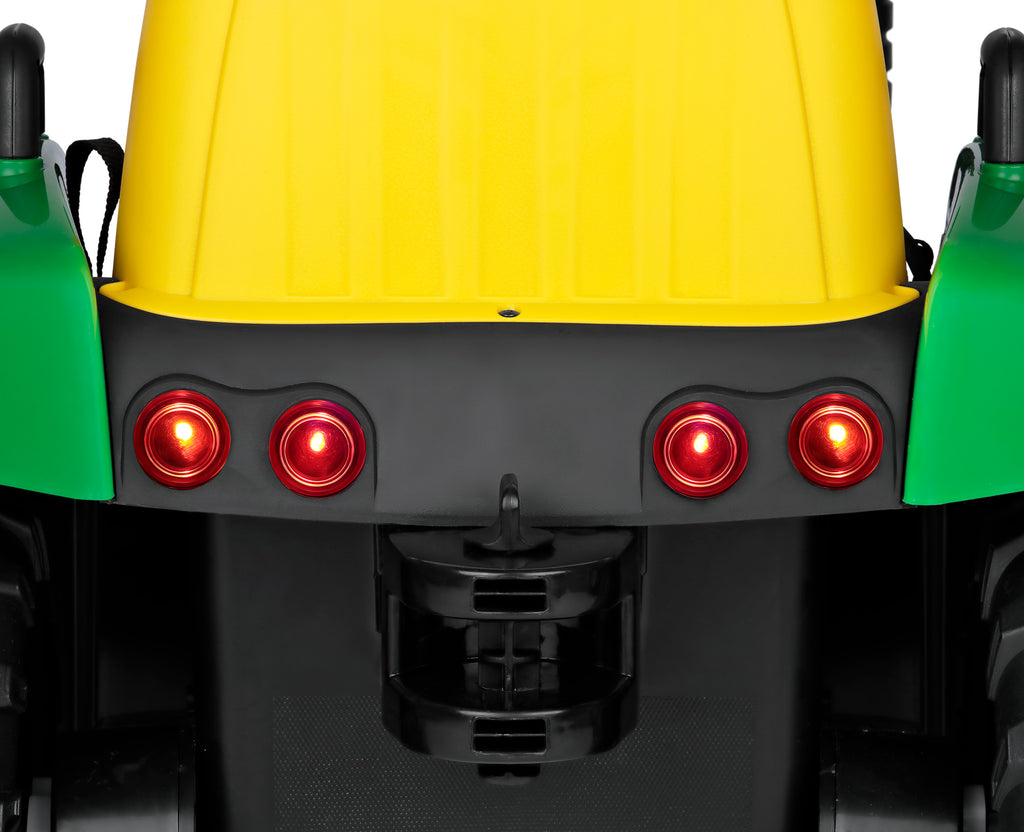 The John Deere Farm Power is a high-quality 12V electric ride-on tractor designed to deliver hours of outdoor fun for young children. Suitable for age 18 months and up, this officially licensed John Deere toy combines realistic styling with exciting features like working lights, engine sounds, and a multifunction dashboard that enhances imaginative play. With two forward speeds (3.5 and 7.3 km/h), reverse gear, and rugged tread wheels, it’s built for adventure on grass, gravel, or hard surfaces. The included spacious trailer lets kids transport toys or garden treasures just like a real farmer, while the accelerator pedal with automatic brake ensures smooth and safe operation. Parents can also take control via the optional remote, making it ideal for younger riders who are still learning. Built in Italy with attention to detail and durability, the John Deere Farm Power is the perfect ride-on toy for little ones who love tractors and outdoor play. From 18 months to 3 years, the tractor can be driven by an adult via radio control; from 3 years, it can be driven by children for fantastic adventures.