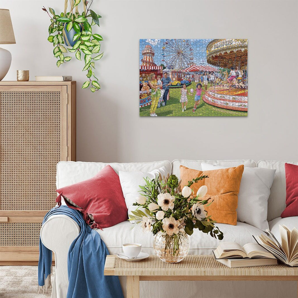Do you remember visiting a traditional fairground like this? Remember the excitement of a ride on the galloping horses (or "Gallopers"), whizzing down the helter-skelter, testing your skills to win a prize and then taking in the view on the Wonder Wheel? Not forgetting the taste of the candy floss and the ever-present smell of hot dogs and onions! What a great day out for all the family! Relax, rekindle memories of days gone and create some mindful moments as you assemble this colourful, detailed and nostalgic puzzle. Our 1000 piece jigsaws are crafted with premium quality materials and measure 70 x 50cm when complete. Great for Adults and ideal puzzles for Children 12 years old and up. Fully complies with all necessary UK and EU testing standards. This product is made of FSC®-certified and other controlled material. By choosing this product, you are supporting responsible management of the world’s forests.