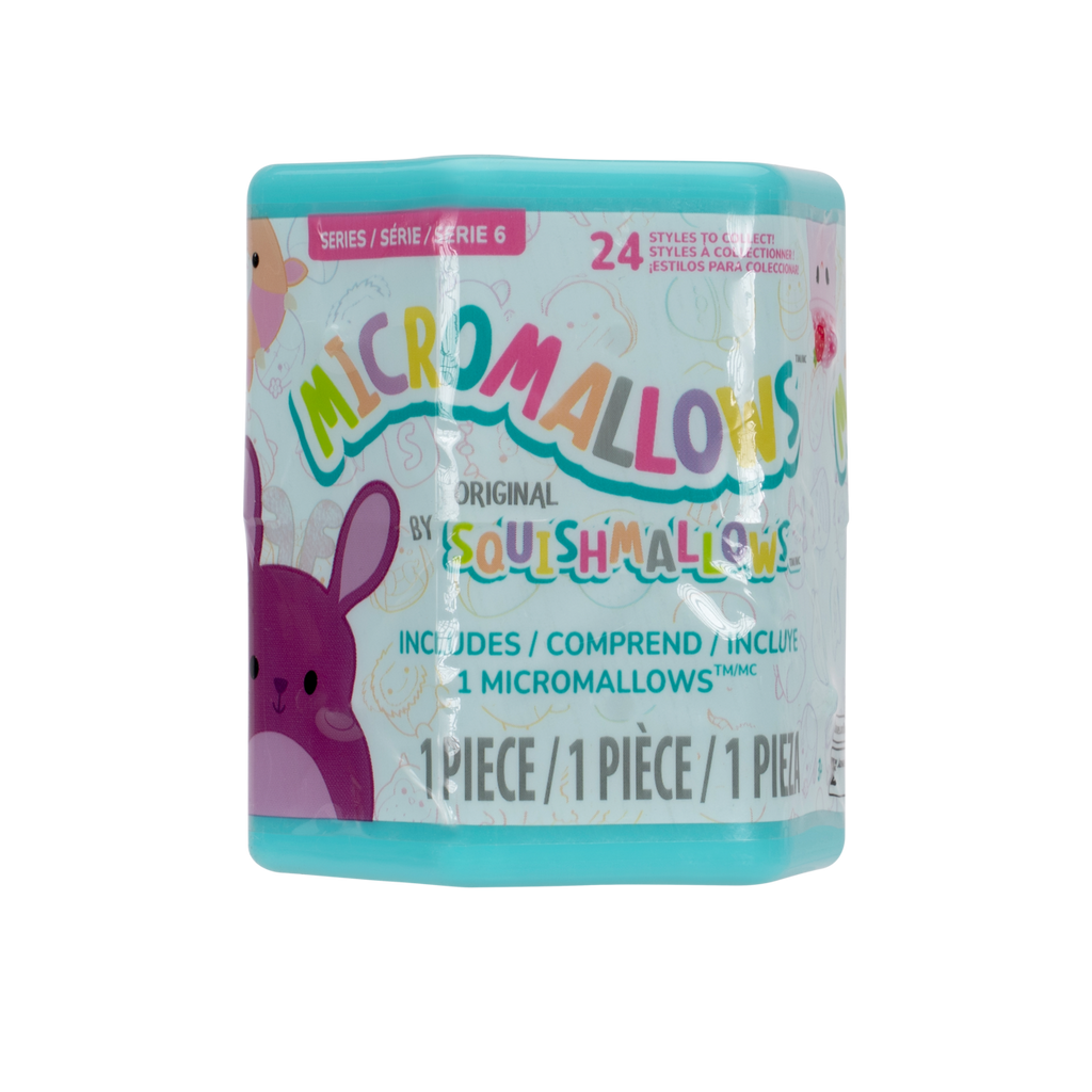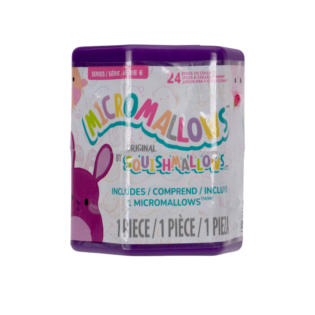 (1) Connectable Plastic Capsule. Micromallows are tiny but mighty 2.5-inch micro plush by Original Squishmallows. Each Micromallows comes in a connectable-and-collectable Blind Capsule that can snap into other Capsules to create a colourful Micromallows display. Series 6 includes Squishmallows favourites like Kira the Hedgehog and Ally the Axolotl—see if you can collect all 24 Official Squishmallows product: look for the official seal and join the Squad Collect into other Squishmallows extensions, including FuzzAMallows, HugMees, Mystery Squad, and Stackables, only by Original Squishmallows.