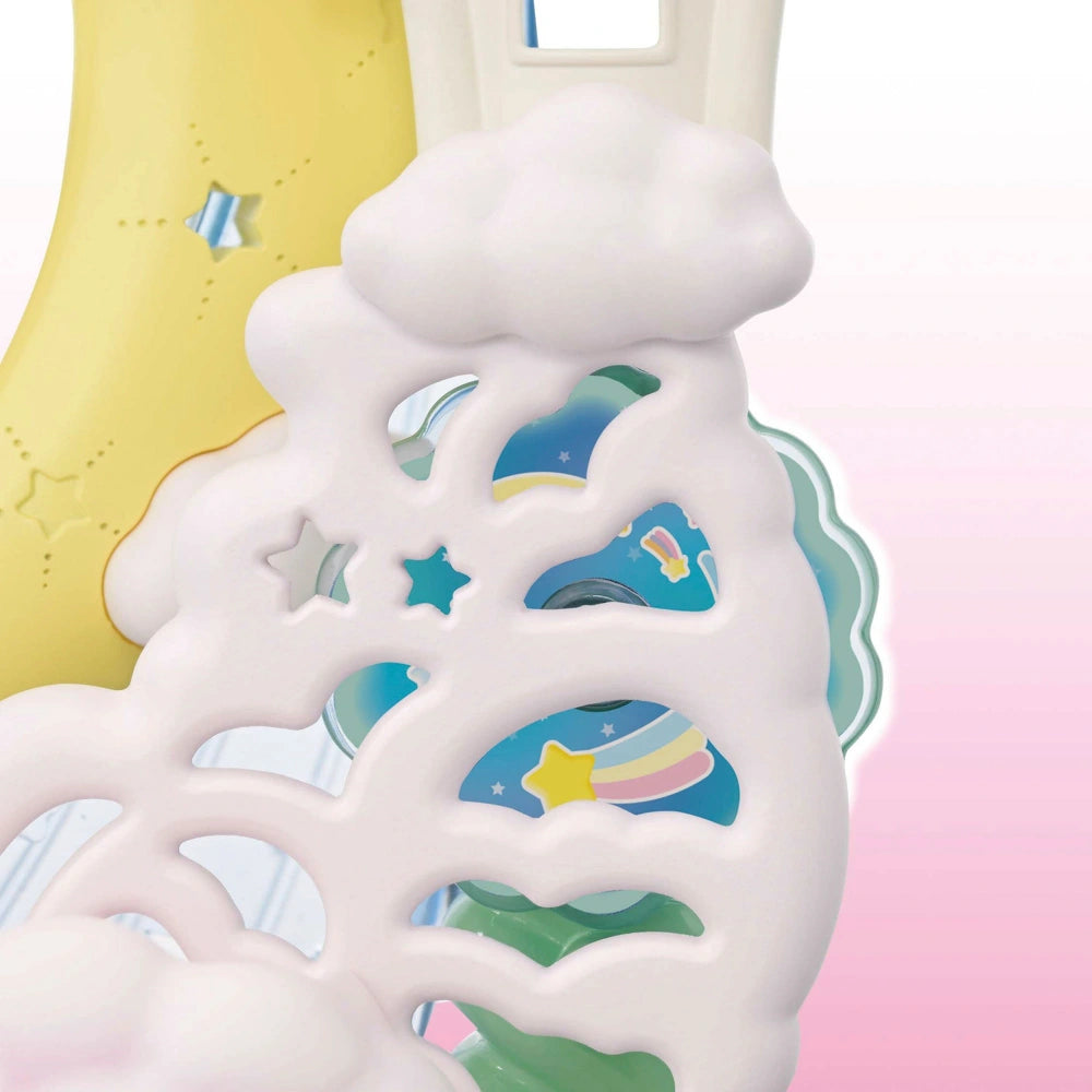 Turn the wheel to move the moon, where Latte Cat Baby Nicolo sways inside a dreamy skyship.