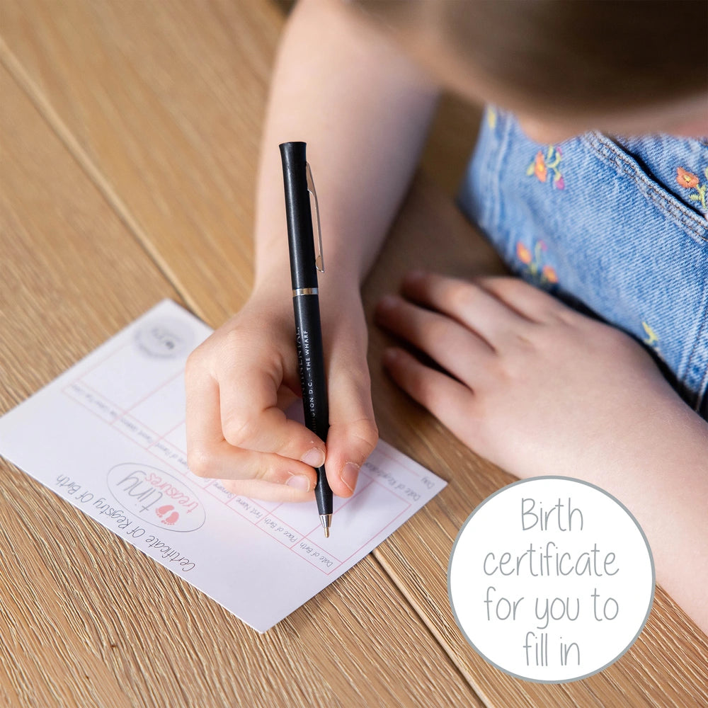 Contents: 1x Tiny Treasures Baby Doll in Pink Bunny, 1x Matching Headband, 1x Birth Certificate, 1x Hospital Tag.