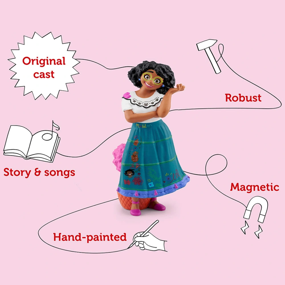 Mirabel is the only ordinary member of her family, but could she be their last hope? Pop this magical, musical Tonies Disney Encanto Mirabel on your kids’ Toniebox for an enchanting tale of adventure and courage as Mirabel sets out to save the Encanto. Featuring top Lin-Manuel Miranda hit We Don’t Talk About Bruno and a reading of Disney’s Encanto in both English and Spanish, this little Tonie is sure to become a very firm favourite in a jiffy.