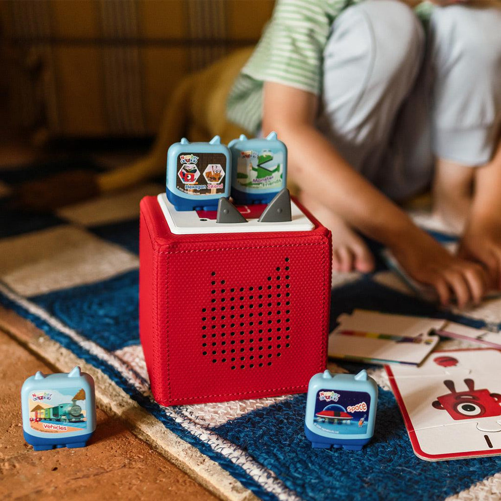 Tonies are beautiful hand-painted figures that play audiobooks, songs and stories when placed on a Toniebox. Take music and bedtime stories wherever you go with fun characters, simple controls, and no bright screens. Easy to Use Place a Tonie on top of your Toniebox to play stories or songs. Take it off to stop. It's easy, even for 3 year olds! Made for Kids Fun characters and kid-friendly designs make Tonies the perfect companion for bedtime stories and lullabies, imaginative play and long or short car journeys. Loved by Parents Welcome to screen-free play. Tonies replace bright, over-stimulating screens with hand-painted figures and simple tactile controls. Based on the hit CBeebies show, this Numberblocks Audio Tonie 4 Pack features the Numberblocks who split apart and join together to do amazing number magic! Each story is magical and musical. Great for introducing number fans to early maths, this will have children singing along to sums and counting down to the next listen.