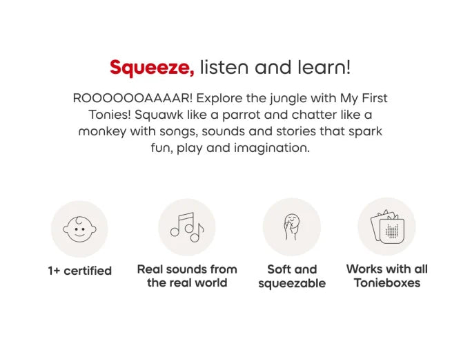 With an original tonies Jungle song to sing and dance along to, accompanied by rich soundscapes, the jungle comes to life right before your ears.