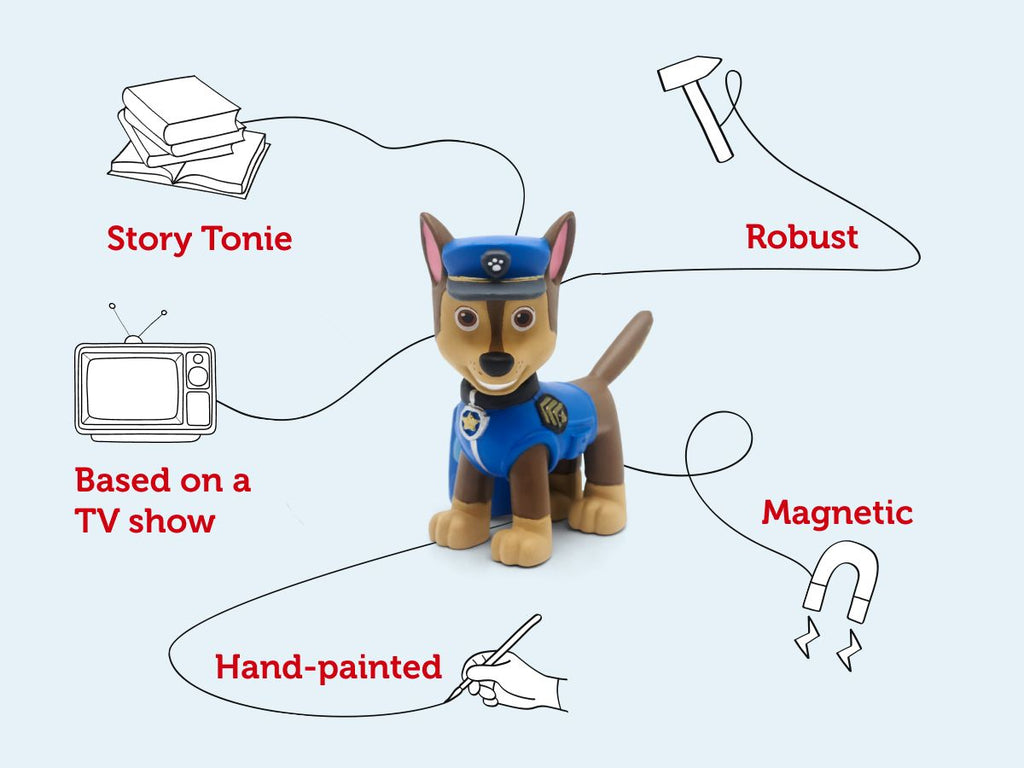 Tonies are beautiful hand-painted figures that play audiobooks, songs and stories when placed on a Toniebox. Take music and bedtime stories wherever you go with fun characters, simple controls and no bright screens. Welcome to screen-free play. Tonies replace bright, over-stimulating screens with hand-painted figures and simple tactile controls. On this Tonie you will find a reading of PAW Patrol, these heroic pups live by their motto, ‘No job is too big, no pup is too small!‘