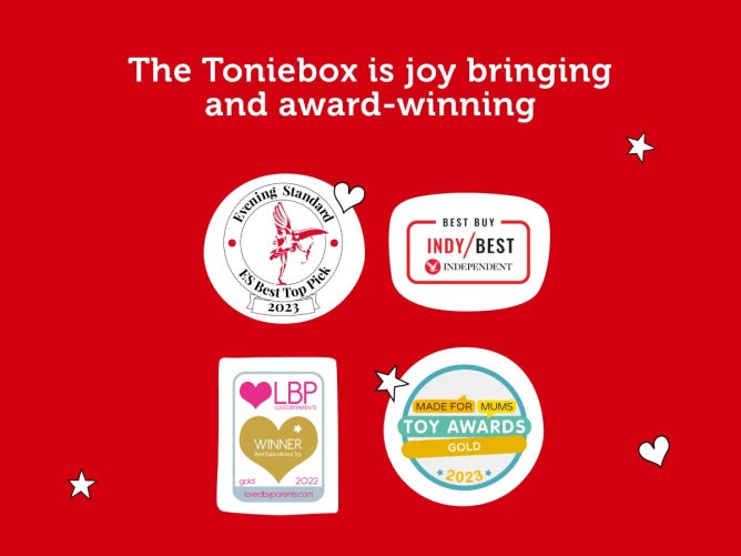 Place a Tonie on top of your Toniebox to play stories or songs. Take it off to stop. It's easy, even for 3 year olds!