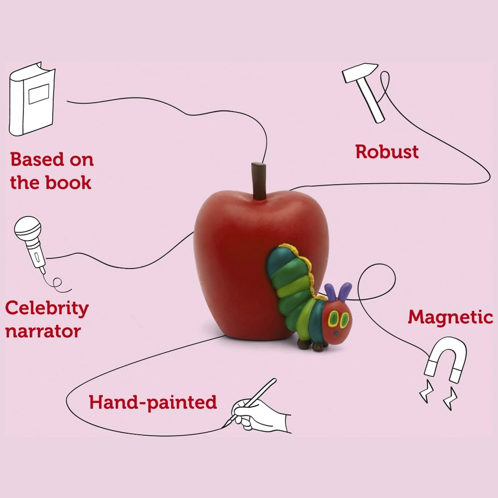 For little munchers always hungry for one more story, this classic Eric Carle collection is full of delights. All they need to do is pop the always-hungry caterpillar Tonie on top of a Toniebox and get ready for some tasty tales, plus a few extra treats. Read by actress Jodie Whittaker, this Tonie includes three Eric Carle stories, The Very Hungry Caterpillar, The Very Busy Spider and The Very Quiet Cricket, as well as some sensational songs and fascinating facts about all three incredible insects. So whether your little bugs are curling up for story time, getting busy at playtime, or ready for some quiet time, this Tonie is ready for every eventuality.