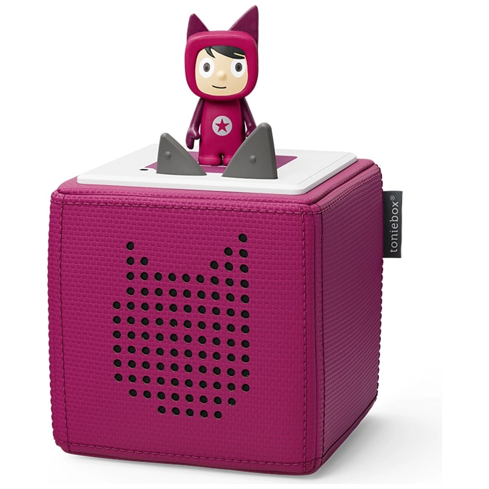 Start your audio adventure with Toniebox: where listening meets play. Kids can take music and stories wherever they go with simple controls and no bright screens. Just place a Tonie on the Toniebox and listen… How it Works When you put a Tonie on the speaker for the first time, its story will download directly onto the Toniebox from the Toniecloud. The music or story will start playing instantly. Once the audio content has been completely downloaded you can play it anywhere, without a WiFi connection. Creative-Tonie The Toniebox Starter Set comes with a Creative-Tonie. This hand- painted figure can play 90 minutes of your own music, audiobooks and kids’ voice recordings. Simply upload your audio content to the Toniecloud, add to the Creative-Tonie and get creative. Tonies Add ready-to-play Tonies with preloaded audiobooks or music to grow your library. Each sold separately. Toniecloud Store up to 400 hours of content on your Toniecloud account. You’ll need to connect to your WiFi during the initial set up, when adding a new Tonie or when changing the content assigned to each Tonie.