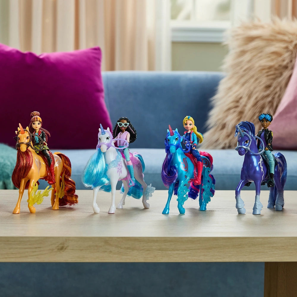 Step into the magic of Unicorn Academy with the Isabel doll & River set, inspired by the hit Netflix series and best-selling book series. Featuring realistic character styling and themed accessories, this duo brings the Power of Friendship to life through imaginative play. The 11cm Isabel doll has 7 points of articulation, metallic power markings, and can ride River into adventure with ease!