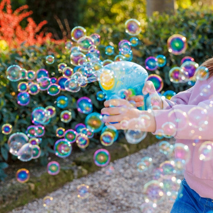 Simply load the lightweight Wanna Bubbles Bubble Blaster up with bubble solution (not included), pull the trigger and watch as a cascade of bubbles fill the air! Available in two colours - red and blue (each sold separately). Perfect for outdoor play, parties, and sunny days in the park. Guaranteed laughter and joy for your child, indoors or outdoors. Contents: 1x Wanna Bubbles Bubble Blaster.